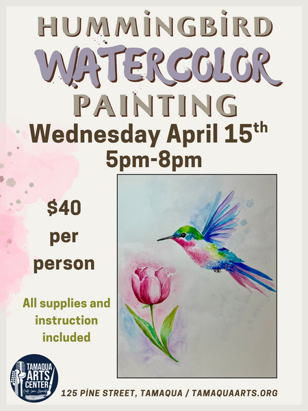 Escape your daily routine and unwind with while paining this Spring image. Beginner friendly class, bring your friends for a fun evening at the Tamaqua Arts Center